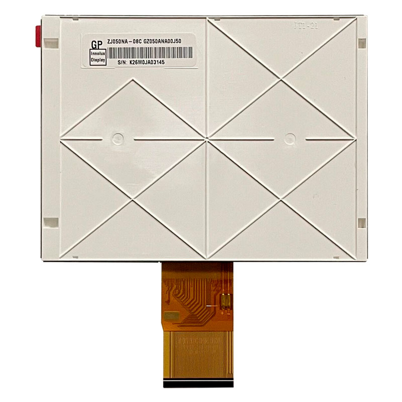 The Innolux ZJ050NA-08C 5-inch TFT LCD display module offers a reliable, compact display solution suited for industrial, embedded and OEM applications. With a 640×480 (VGA) resolution, 250 cd/m² typical brightness, and a 50-pin RGB parallel interface, this panel delivers clear visuals and stable signal transmission for human-machine interfaces (HMIs), embedded systems, information displays, and kiosk terminals.